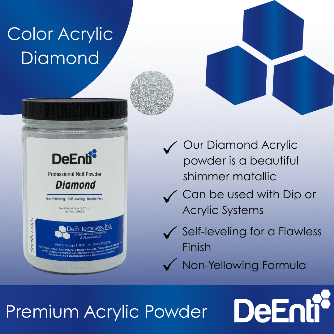 Sold by the pound (LBS). Our Diamond Acrylic powder features a sparkling silver base with stunning glitter.
